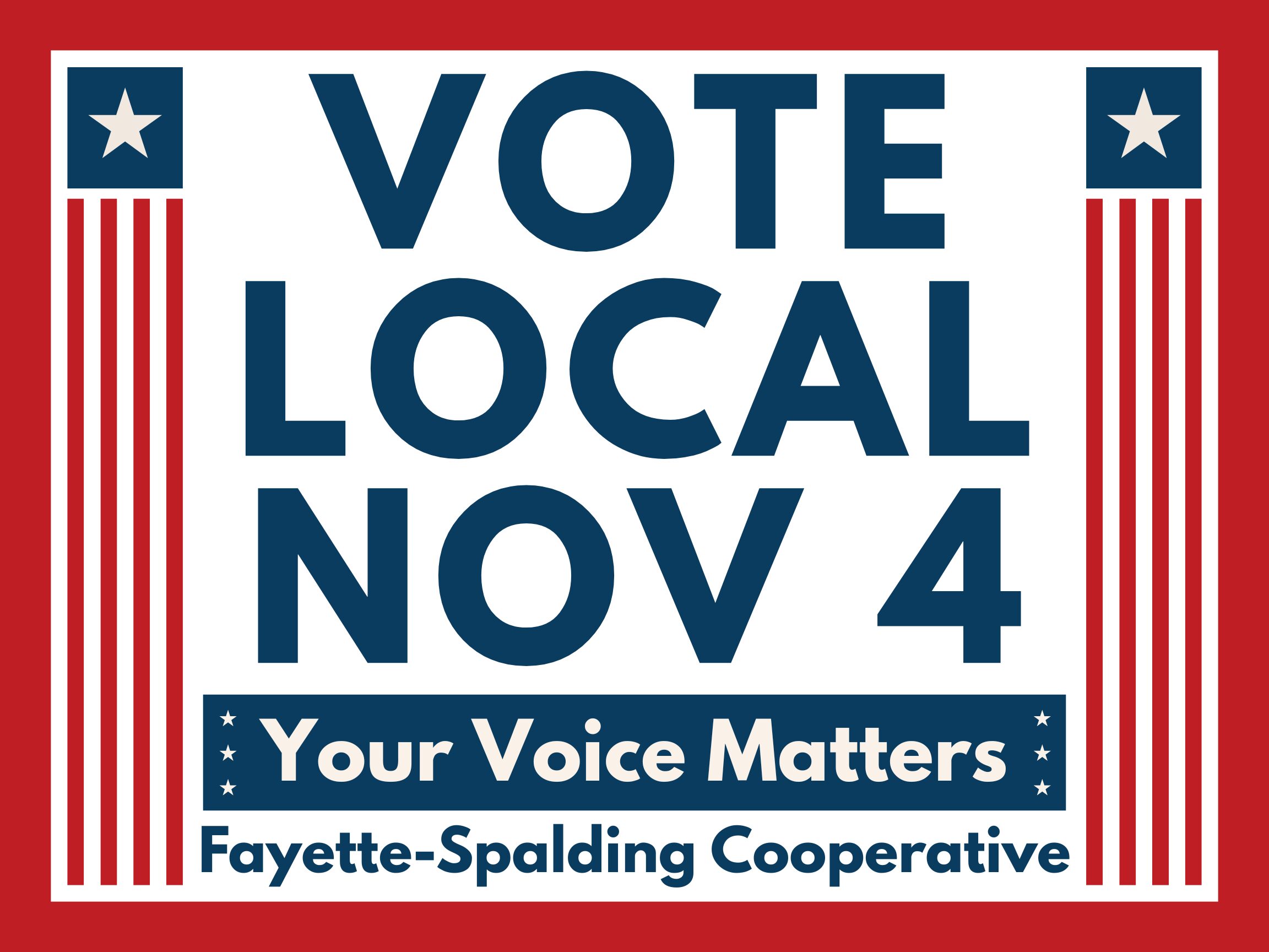 Most voters are completely unaware that there are important elections happening this year. For the 2025 Election the Fayette-Spalding Cooperative has designed yard signs for our community to display which will help remind our neighbors of their civic duty!